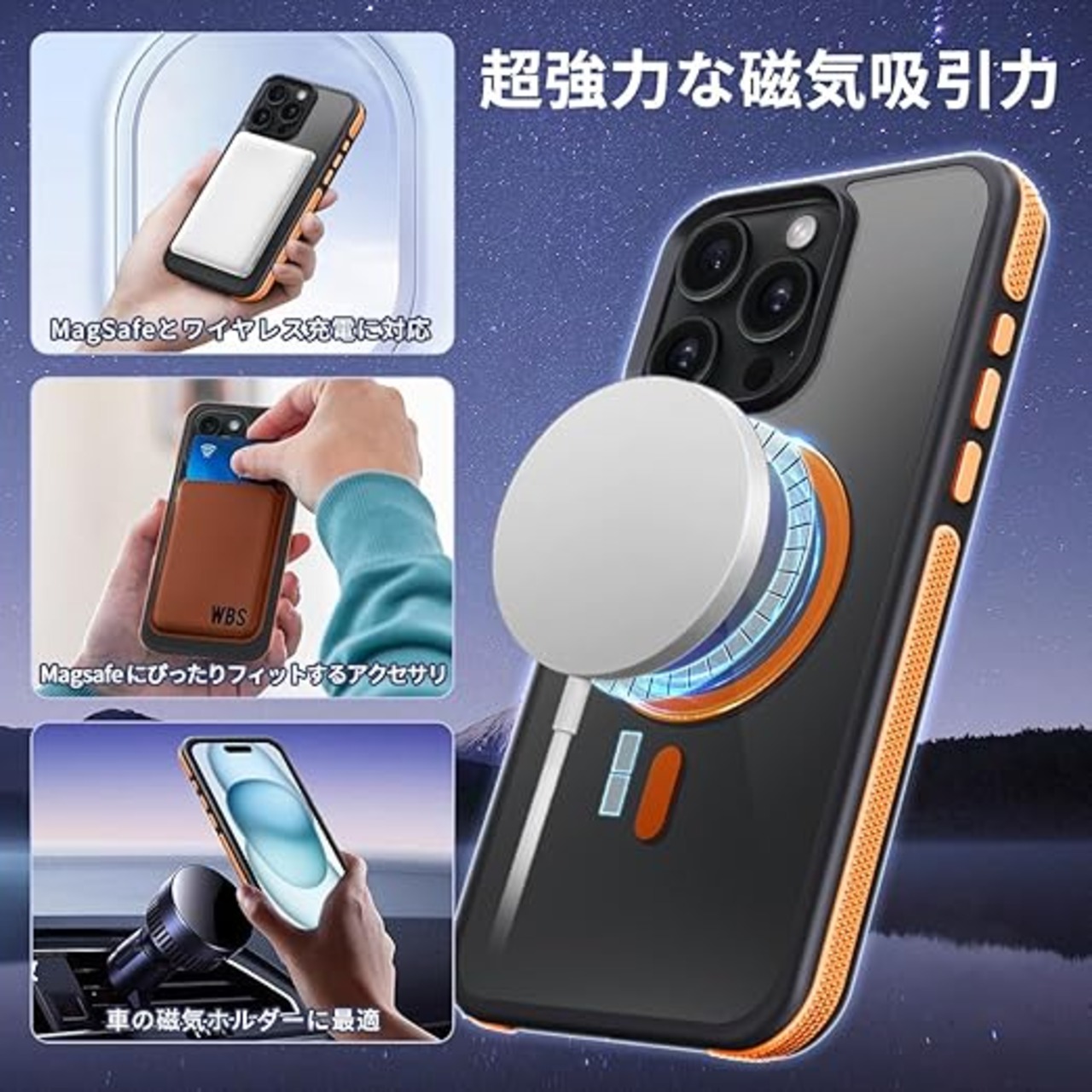【MagSafe対応・超強力な磁力】 ハイパワーマグネット内蔵、でいくら振っても落ちません。自動位置合わせとしっかりと吸着が可能になり。すべ