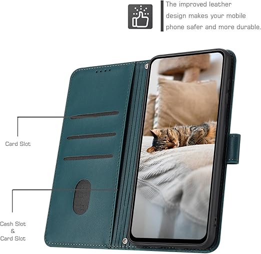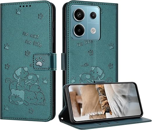 Redmi Note 13 Pro 5G ケース 手帳型 Vlimus かわいい子猫の携帯電話ケース POCO X6 5G ケース カード収納 耐衝撃 レッドミーnote 13 Pro 5G ケース ポコ X6 5G ケース 耐久性 指紋防止 スタンド機能 POCO X6 ケース ウエストバックルマグネット式 防水 レッドミーnote 13 Pro 5G スマホケース 濃い緑 a
