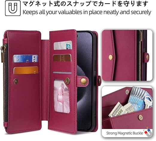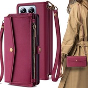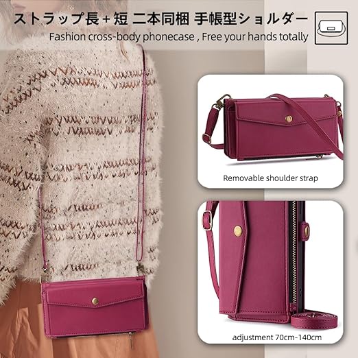 Xiaomi 14T Pro ケース 手帳型 通用 シャオミ14tプロ ショルダーケース xiaomi 14tpro ストラップケース シャオミ 14T プロ A402XM SIMフリー SoftBank Xiaomi14t pro 手帳ケース Xiaomi14TPro カバー 適用 case Cobeimisr ショルダー バッグ ストラップ 斜め掛け スマホケース カードケース ワインレッド a