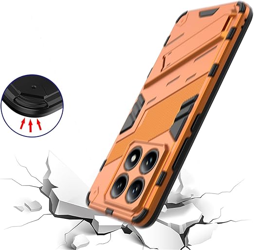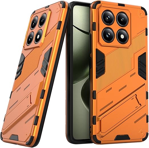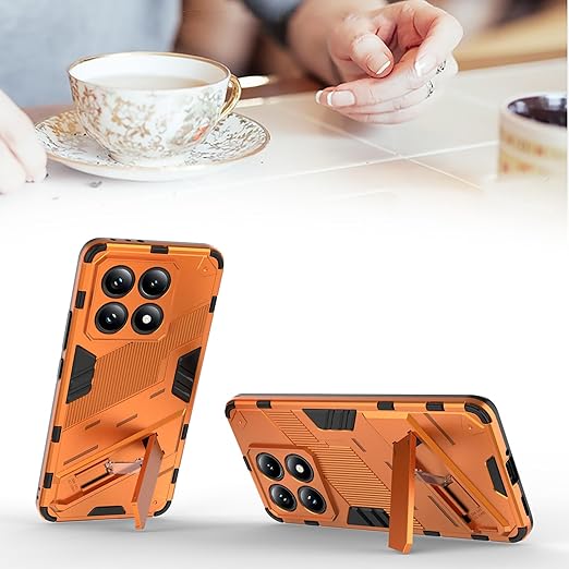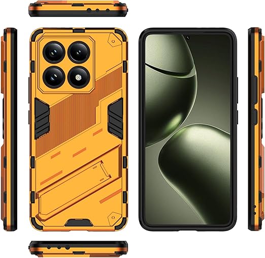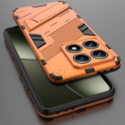 Xiaomi 14T ケース 薄型 軽量 カメラ保護 指紋防止 滑り止め キックスタンド カバー (オレンジ, Xiaomi 14T) a