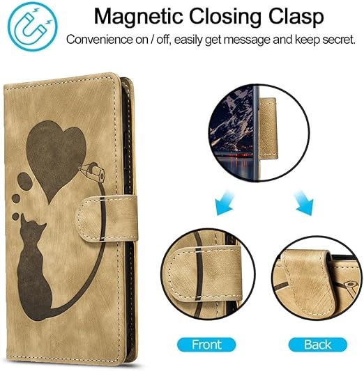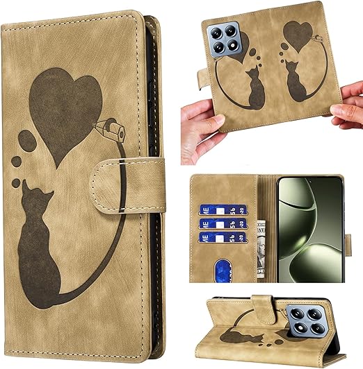ONETHEFUL Xiaomi 14T ケース シャオミー 14T ケース 耐衝撃 スタンド機能 Xiaomi 14T カバー 外側の両面マグネット シャオミー 14T ケース 手帳型 クラスプ カード収納 スマホケース Xiaomi 14 T 人気 全面保護 可愛い 猫ロケットの愛 パターン 柔らかいTPU Xiaomi Redmi 14T 適応 6.67 インチ - カーキ a