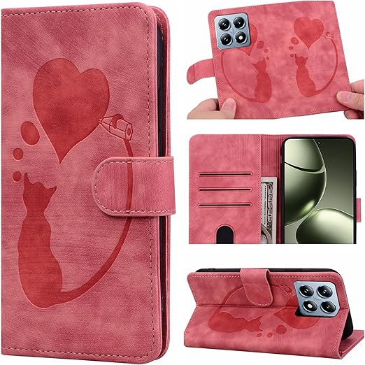ONETHEFUL Xiaomi 14T ケース シャオミー 14T ケース 耐衝撃 スタンド機能 Xiaomi 14T カバー 外側の両面マグネット シャオミー 14T ケース 手帳型 クラスプ カード収納 スマホケース Xiaomi 14 T 人気 全面保護 可愛い 猫ロケットの愛 パターン 柔らかいTPU Xiaomi Redmi 14T 適応 6.67 インチ - ピンク a