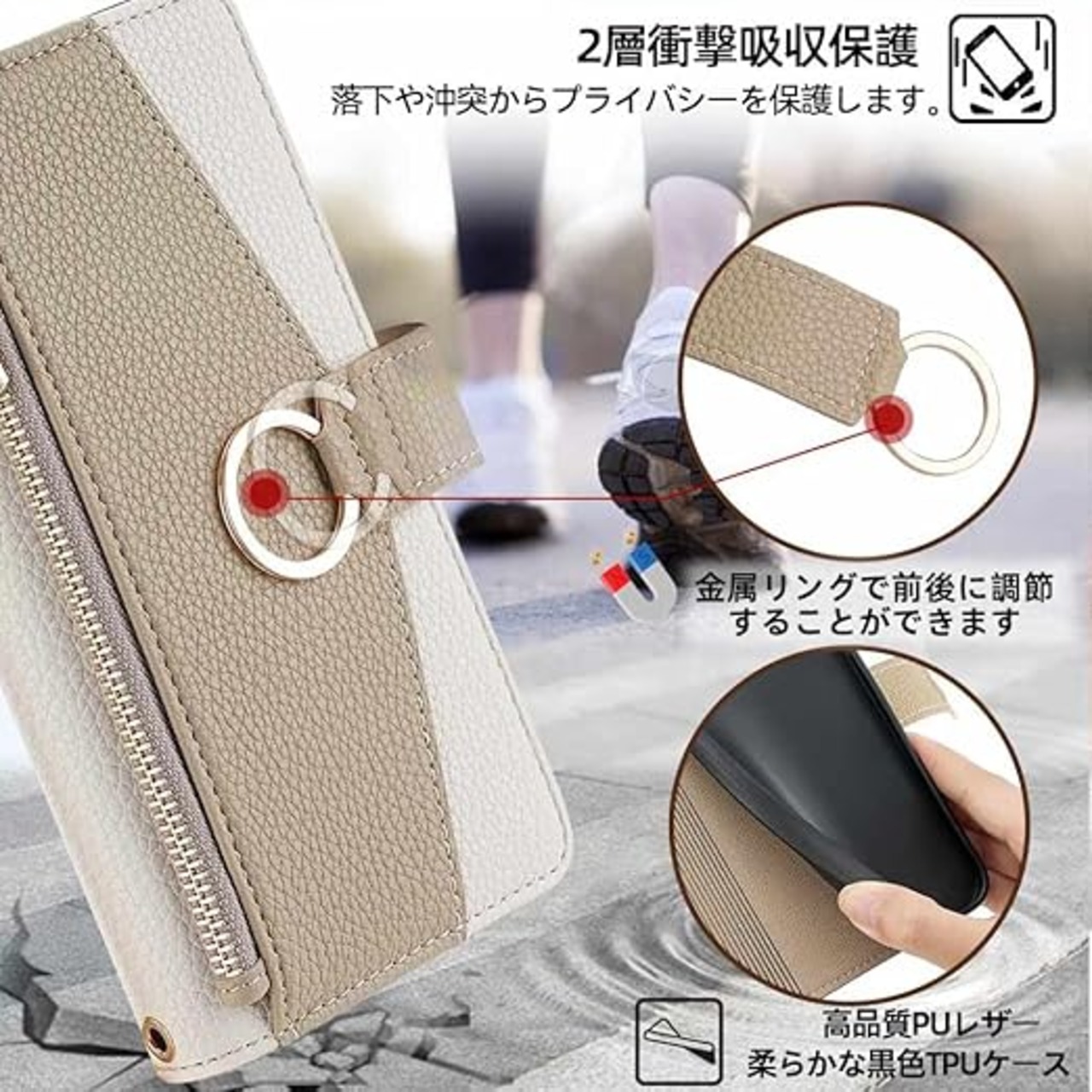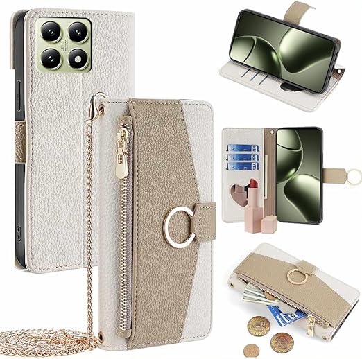 Xiaomi 14T ケース シャオミ14T ケース ショルダー ストラップ付き レッドミ14t ケース スタンド機能 カード収納 ミラー付き 耐衝撃 肩掛け スマホケース Xiaomi Redmi 14T 手帳型 おしゃれ 女性 柔らかいTPU TOO&SOO Xiaomi 14T ケース 斜め掛け 適応 6.67 インチ - オフホワイト a