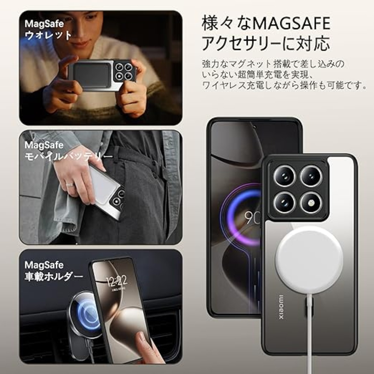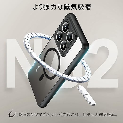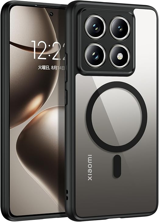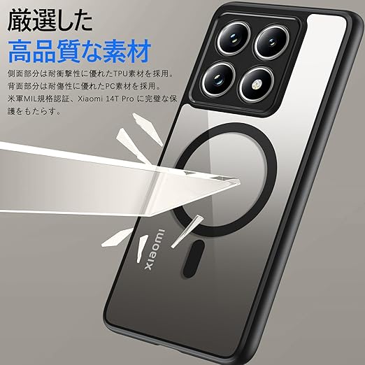 BENTOBEN Xiaomi 14T Pro ケース クリア MagSafe対応 ワイヤレス充電 耐衝撃 米軍MIL規格 軽量 薄型 指紋防止 黄変なし 透明 強力マグネット搭載 ストラップホール付き Xiaomi14T Pro スマホケース カバー ブラック a