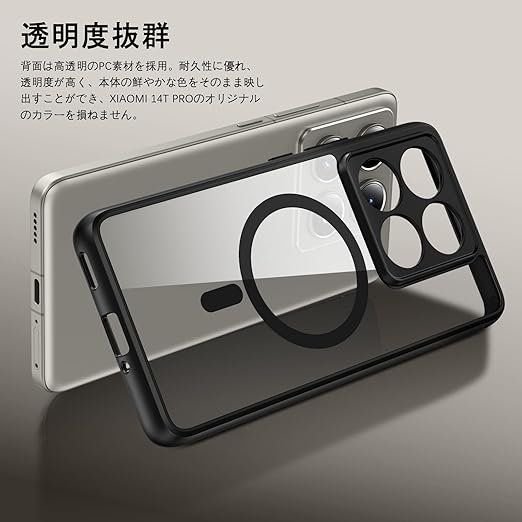 ★【美しすぎる透明感】背面は高透明のポリカーボネートを採用。耐久性に優れ、透明度が高く、本体の鮮やかな色をそのまま映し出すことができ、Xiaomi14T Pro のオリジナルのカラーを損ねません。くリアな美しいさを長時間おたのしみいただけます。