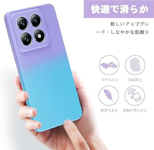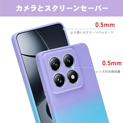【 Moilyo 】 Xiaomi 14T Pro 専用 ケース TPU シリコン 柔軟 超軽量 薄型 シャオミ ミー 14t プロ 韓国 おしゃれ グラデーション色 ケース 耐衝撃 ストラップホール付き落下防止 mi14tPro 保護カバー (パープルブルー) a
