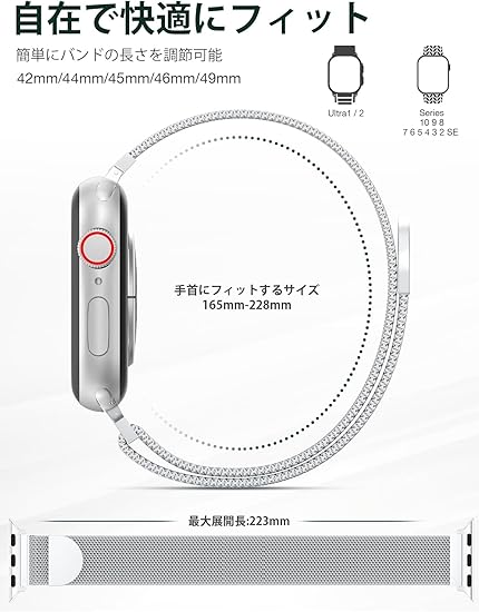 【全機種対応】49mm/46mm/45mm/44mm/42mm/41mm/40mm/38mmに対応しています。Watch Series 11 10 9 8 7 6 5 4 SE3 SE2 Ultra 3の全シリーズと互換性があります。※ご購入前にサイズをご確認ください。