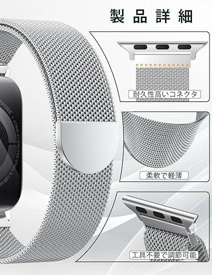 EPULY コンパチブル アップルウォッチバンド 49mm 46mm 45mm 44mm 42mm 41mm 40mm 38mm Apple Watch用のバンド マグネットクラスプ ステンレス鋼 メッシュ 通気 男女兼用 長さ調節 Watch Series 11 10 9 8 7 6 5 4 SE3 SE2 Ultra 3 に対応 c