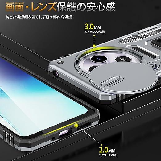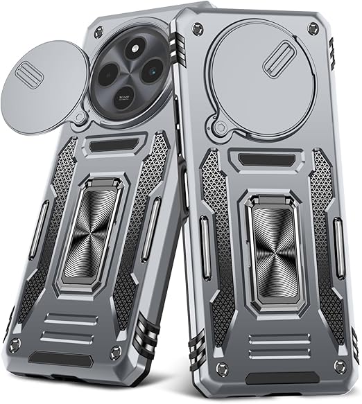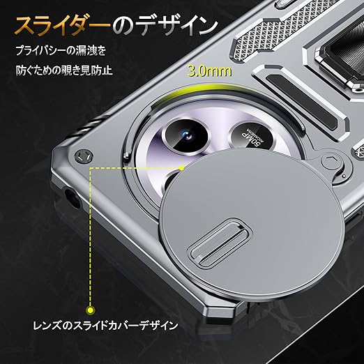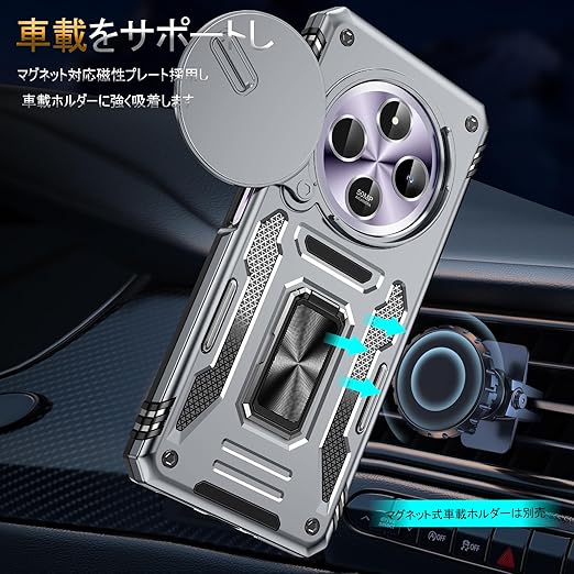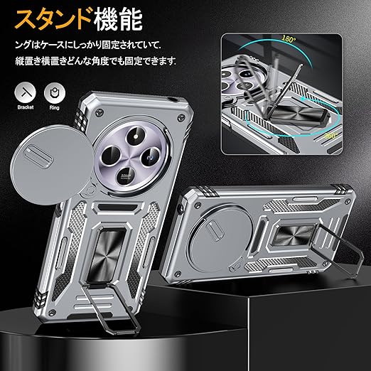 Redmi 14C 用ケース リング付き スライド式カメラカバー 耐衝撃 スタンド機能 車載ホルダー レンズ保護 シャオミ レドミ 14C 用スマホケース PC TPUバンパー 防塵 人気 落下防止 滑り止め 指紋防止 携帯カバー グレー K231 a