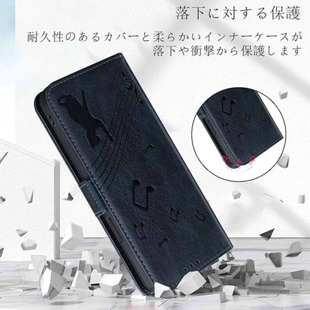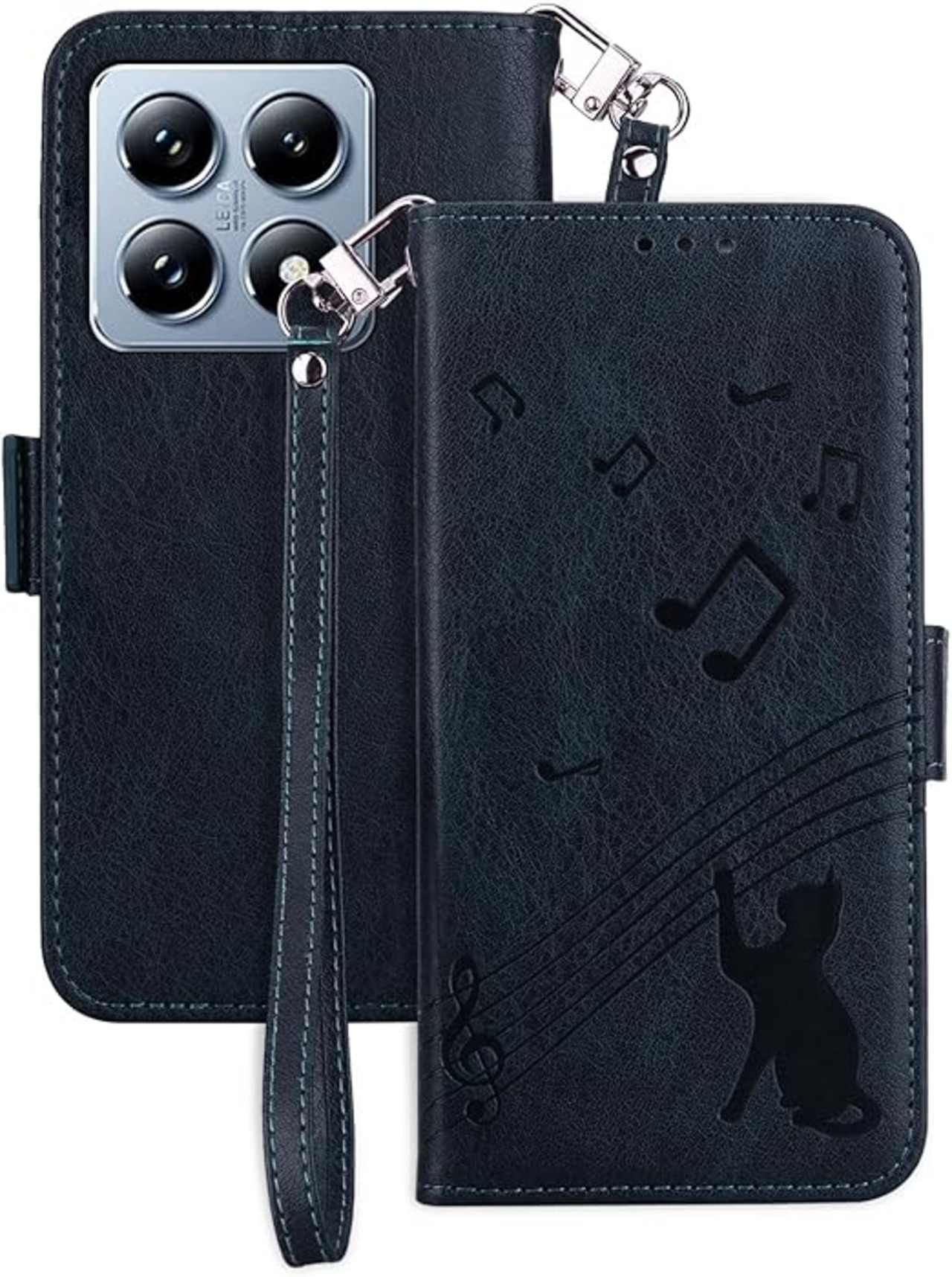 Xiaomi 14T Pro ケース 手帳型 シャオミー 14T プロ スマホケース スタンド機能 xiaomi 14 t pro ケース 手帳型 マグネット カード収納 耐衝撃 Xiaomi Redmi 14T Pro カバー 全面保護 可愛い 猫柄 音楽 柔らかいTPU TOO&SOO シャオミー レッドミ14T Pro ケース 適応 6.67 インチ - 濃紺 a