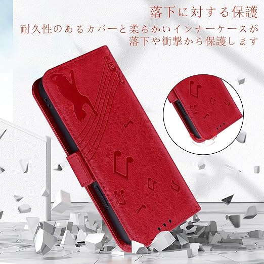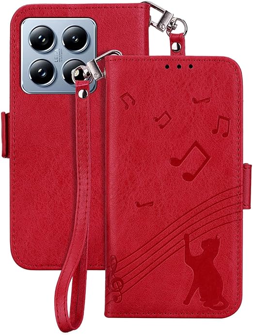 Xiaomi 14T Pro ケース 手帳型 シャオミー 14T プロ スマホケース スタンド機能 xiaomi 14 t pro ケース 手帳型 マグネット カード収納 耐衝撃 Xiaomi Redmi 14T Pro カバー 全面保護 可愛い 猫柄 音楽 柔らかいTPU TOO&SOO シャオミー レッドミ14T Pro ケース 適応 6.67 インチ - 赤 a