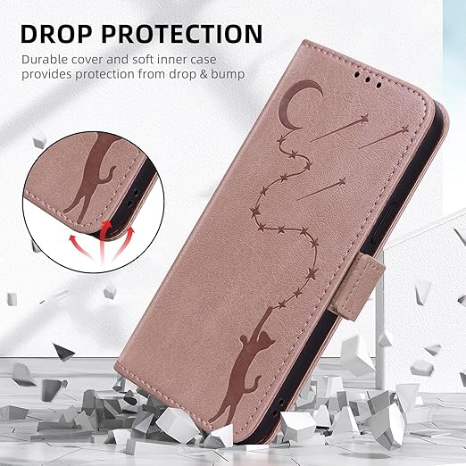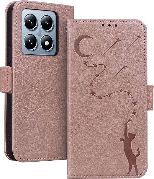 Xiaomi 14T Pro ケース xiaomi 14t pro ケース 手帳型 シャオミー 14T プロ スマホケース スタンド機能 マグネット シャオミー 14T プロ ケース カード収納 耐衝撃 全面保護 可愛い 猫柄 柔らかいTPU ONETHEFUL Xiaomi Redmi 14T Pro 適応 6.67 インチ - ローズパウダー a