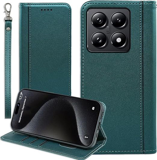 Xiaomi 14T ケース 手帳型 Xiaomi14T ストラップケース 通用 シャオミ 14T XIG07 au 携帯ケース シャオミ14T カバー シャオミ 14tケース xiaomi 14 t 手帳カバー ストラップ付きケース 耐衝撃 手帳ケース 適用 Cobeimisr CASE マグネット ストラップ スマホケース ダーク グリーン a