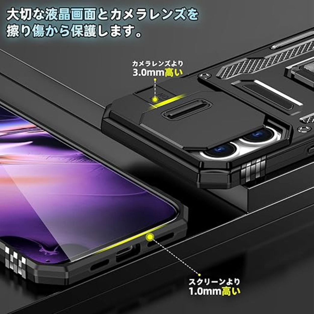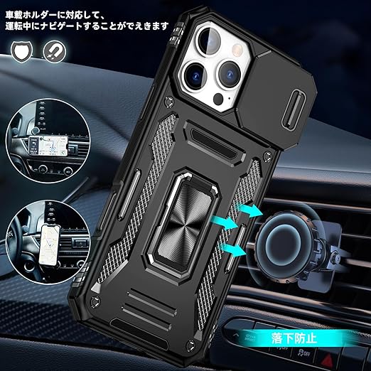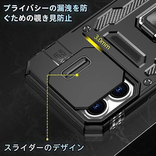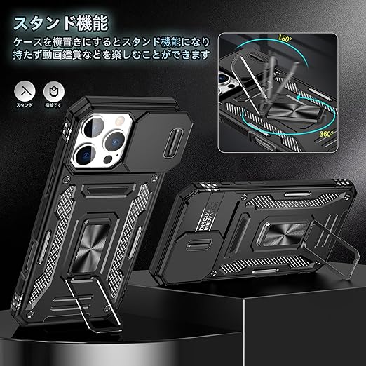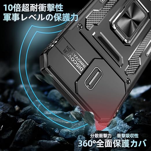 【独特なデザイン】製品構造はスライド式カメラプロテクター付き+360°リング、多層保護、落下防止アップグレード。各穴は正確に取り付けられ、フレームはグレードの落下防止、リアカ