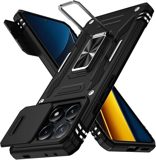Xiaomi Poco X6 Pro 用 ケース リング付き Redmi K70E 5G 耐衝撃 カメラ保護 レンズ保護 画面保護 米軍MIL規格 指紋防止 車載ホルダー対応 スタンド機能 滑り止め TPU+PC材質 ケース 落下防止 一体型 傷つけ防止 格好いい 黄ばみなし ブラック 8006-K70E-01 a