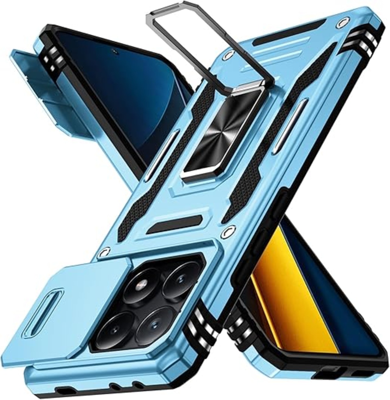 Xiaomi Poco X6 Pro 用 ケース リング付き Redmi K70E 5G 耐衝撃 カメラ保護 レンズ保護 画面保護 米軍MIL規格 指紋防止 車載ホルダー対応 スタンド機能 滑り止め TPU+PC材質 ケース 落下防止 一体型 傷つけ防止 格好いい 黄ばみなし スカイブルー 8006-K70E-04 a