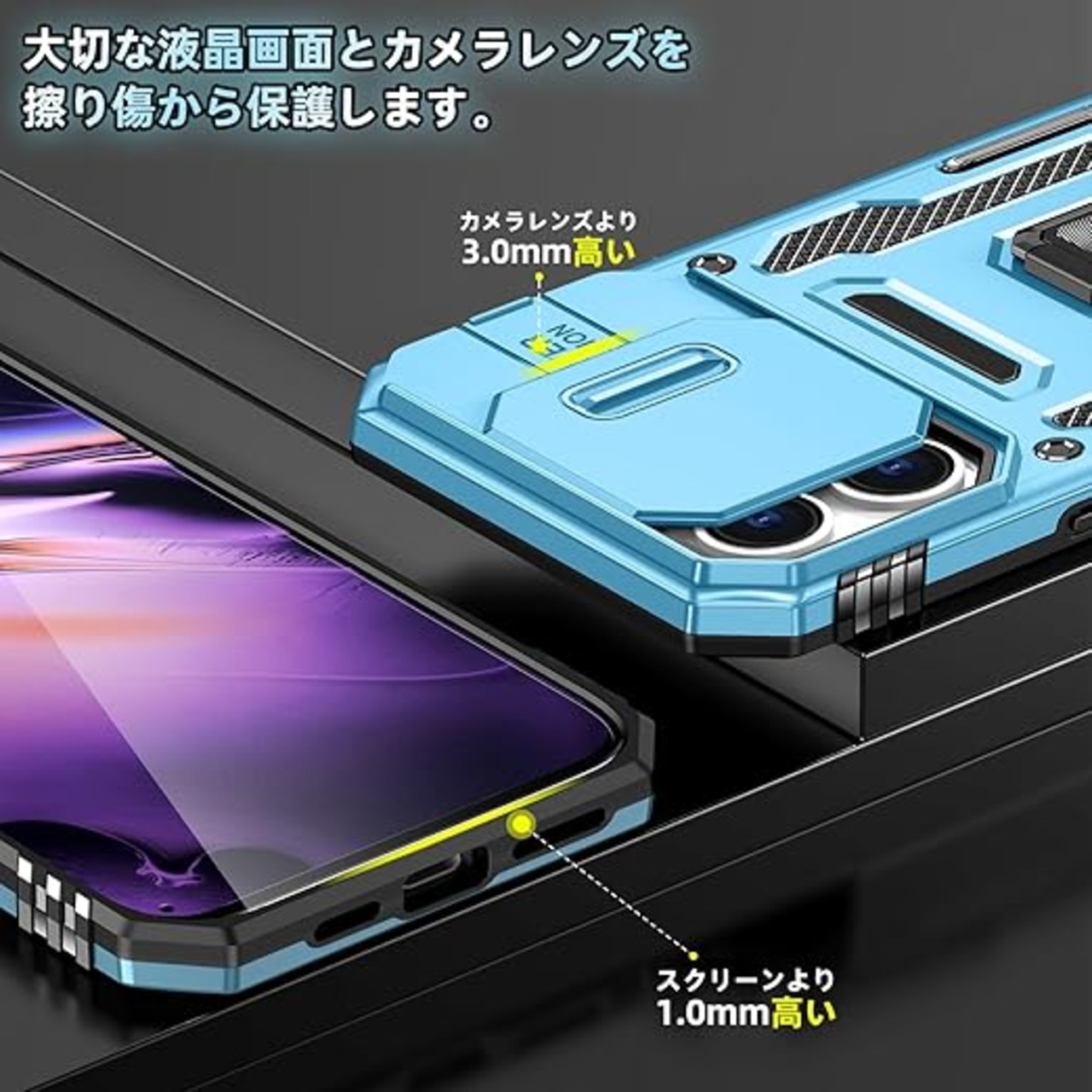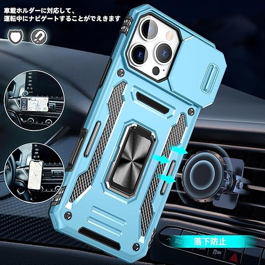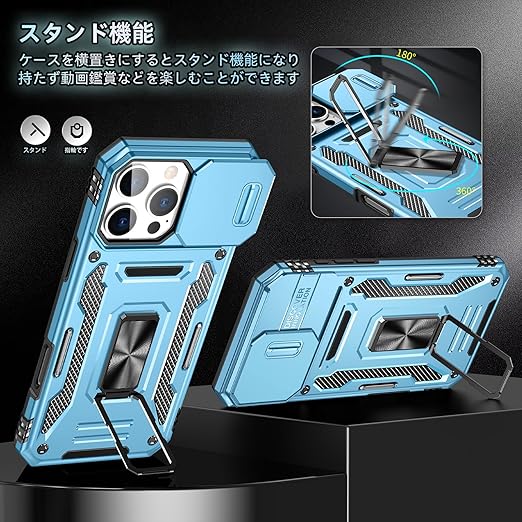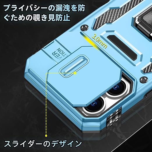 【独特なデザイン】製品構造はスライド式カメラプロテクター付き+360°リング、多層保護、落下防止アップグレード。各穴は正確に取り付けられ、フレームはグレードの落下防止、リアカ