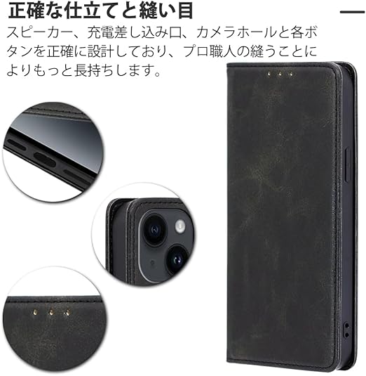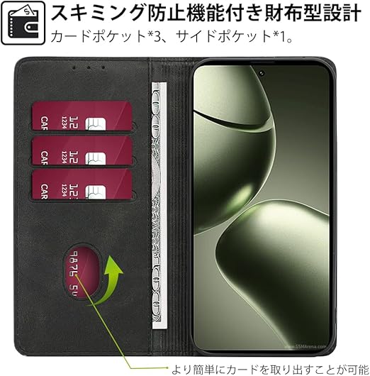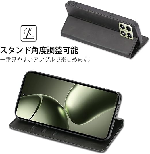 Xiaomi 14T ケース 手帳型 シャオミ14T 財布型 カバー カードポケット付き SUGOIDAN 携帯ケース 革 カード収納 レザー スタンド機能 ストラップホール付き(ブラック) a