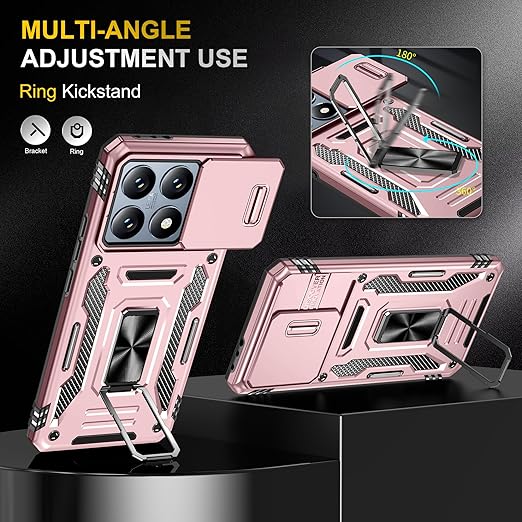 Xiaomi 14T Pro 用 ケース リング付き 全面保護 耐衝撃 スタンド機能 米軍MIL カバー ケース PC+TPUバンパー レンズ保護 車載ホルダー対応 指紋防止 黄ばみなし 薄型 滑り止め 擦り傷防止 落下防止 耐久 スマホケース シャオミ 14T プロ 用 携帯カバー ピンク SJ19.68 a