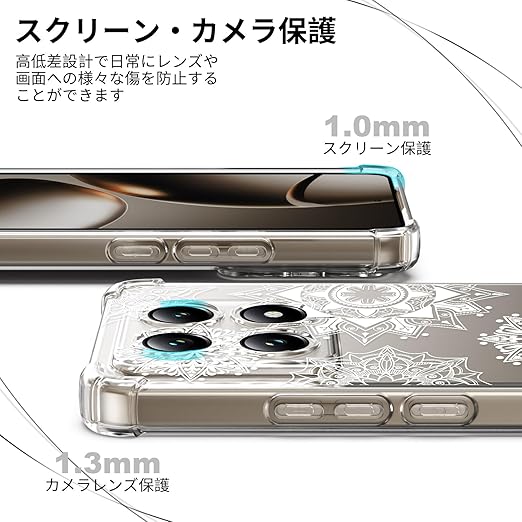 【全面保護】フチ部分に高低差を設け、液晶画面とカメラレンズを傷から守ります。背面四隅には防滑突起(リアガード)があり、机から滑り落ちる心配もなく、平らな場所に置いてもケースが直接接触することなく、レンズの保護も万全です。
