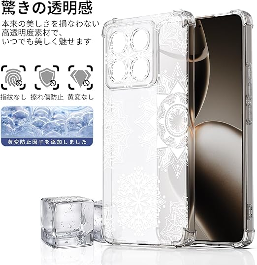 Xiaomi 14T 用 ケース クリア ソフト TPU 米軍MIL規格 耐衝撃 おしゃれ 透明 スリム 薄型 カバー Xiaomi 14t 用 対応 四隅?化保護 軟性 全透明 滑り止め 黄変防止 衝撃吸収 かわいい (月下美人) D518-xm14t-01 a