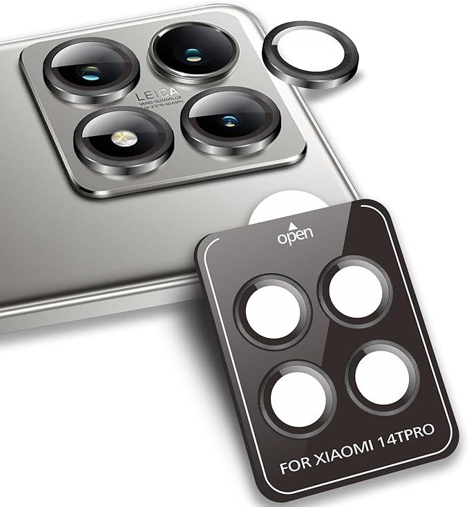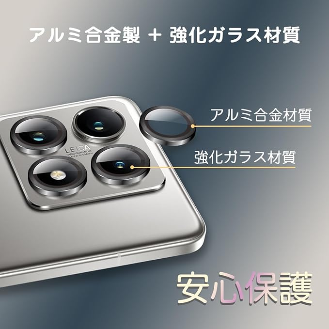 For Xiaomi 14T Pro カメラ保護 ガラスフィルム 硬度9H 強化ガラス 衝撃吸収 飛散防止 全面保護 薄型 独立型 露出オーバー防止 アルミ合金 カメラカバー 高透過率 気泡ゼロ 汚れ防止 ガイド枠付き 貼り付け簡単 (ブラック) a