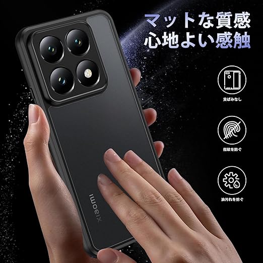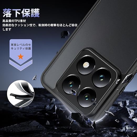 Hinnwer Xiaomi 14T 5G XIG07 ケース 用, 半透明 マット 保護ケース 米軍MIL規格 スマホカバー PC+柔軟なTPU素材 スマートフォン ケース 耐衝撃 指紋防止 滑り止め 耐久性 カバー 黄ばみなし レンズ保護 シャオミ Xiaomi 14T 5G XIG07 Case 用 (マットブラック) a