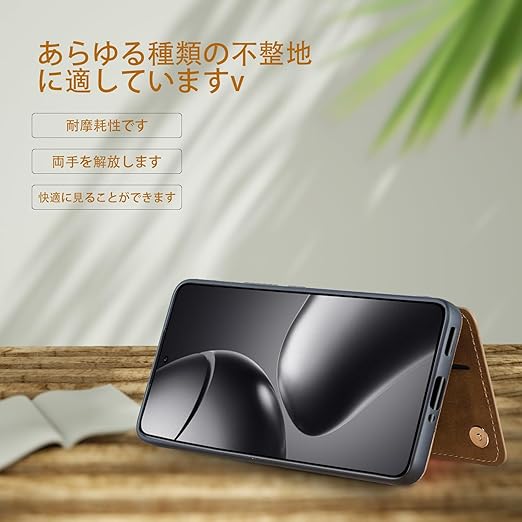 【横置きスタンド機能付き】カードケースの部分を開いてスタンドになれて、ちょっとした時にスタンドがわりとして大変便利です。スマホスタンド不要で好きな角度に調整でき、映画を観たり、レシピを見ながら料理をしたり、いつでも腕が疲れる心配はなく、手に持つ必要がなく、新幹線や飛行機内での長距離移動の場合、テーブルにおいて視聴もできる。