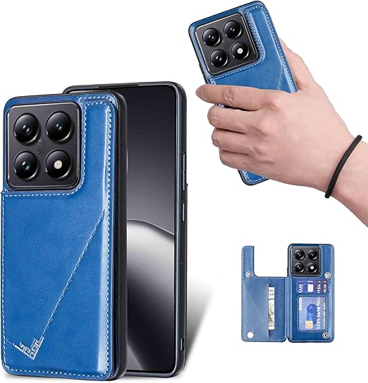 for Xiaomi 14T ケース スタンド機能 ケース ICカード収納 カード 背面カード収納 左と右の電話ケースを反転、シンプルなレトロなファッション、防水と防汚電話ホルダー、多機能財布収納付き、PUレザー、TPUソフトインナー (ブルー) a