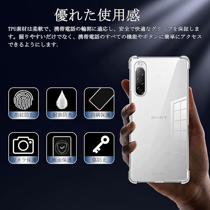【対応機種・製品仕様】 Xperia 10 III SO-52B SOG04 A102SO 専用設計ですので、購入前に使用した携帯電話機の機種を必ず確認してください。売り上げは止まらない!熱は減らない!注文数は3万セットを超えた。この透明ケースのカットは xperia10iii スマートフォンによく合います。これは柔軟性と強度を兼ね備えた次世代の高品質TPU材料筐体であり、軽量、防掻き、抗黄変、柔軟な「転倒防止」、「指紋防止」、「高透明度」を備えている。などの特徴があり、保護が全面的なので、安心