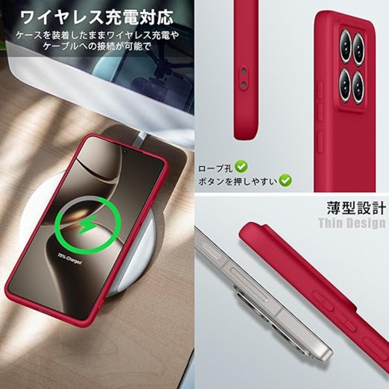 【Tgaoleyd】Xiaomi 14T Pro 用ケース シリコン 耐衝撃 衝撃吸収 ストラップホール付き 指紋防止 シャオミ14T Pro 用ケース レンズ保護 tpu ソフトカバー 6.67インチ 一体型液状シリコンケース 薄型 軽量 人気 携帯カバー 赤 D81-34 a