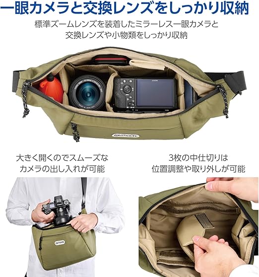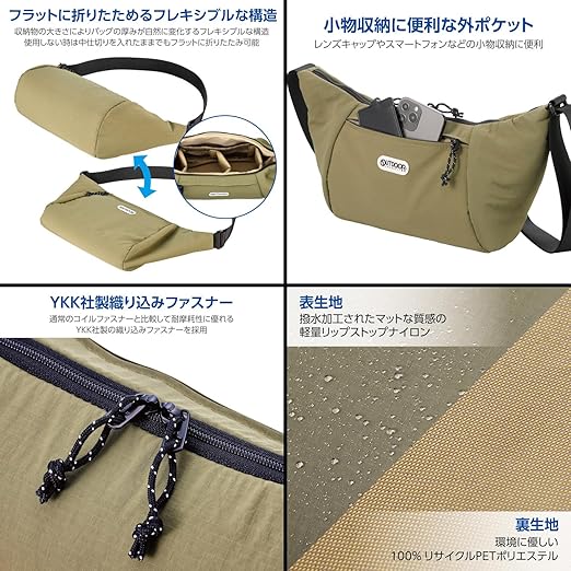 ハクバ 【Amazon.co.jp限定】OUTDOOR PRODUCTS(アウトドアプロダクツ) カメラショルダーバッグ06 AZ オリーブ 軽快に持ち運べるラウンドタイプの超軽量カメラバッグ YKKファスナー 撥水生地採用 AMZODCSB06OV 4977187005295 a