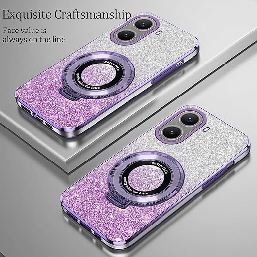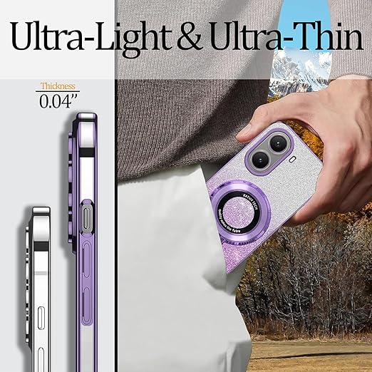Wousunly ケース互換性がありますXiaomi Poco X7 Pro ケースきらきら 薄型 軽量Xiaomi Redmi Turbo 4カバー リング360°回転車載ホル 2in1キラキラ全面保護 (ヴィオラ) a