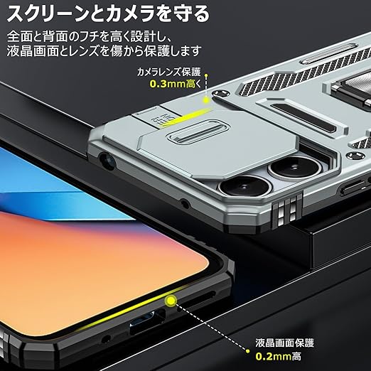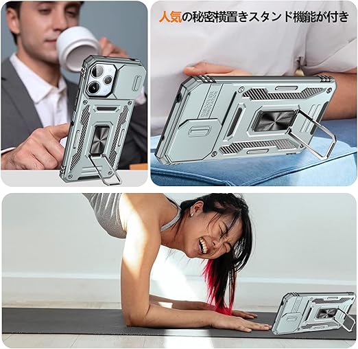 Xiaomi 14T Pro 用 ケース リング付き 衝撃吸収 耐衝撃 スタンド機能 米軍MIL規格 シャオミ14t pro 用ケース 全面保護 360°回転 滑り落ちにくい 人気 おしゃれ 携帯カバー グレー WY95-140 a