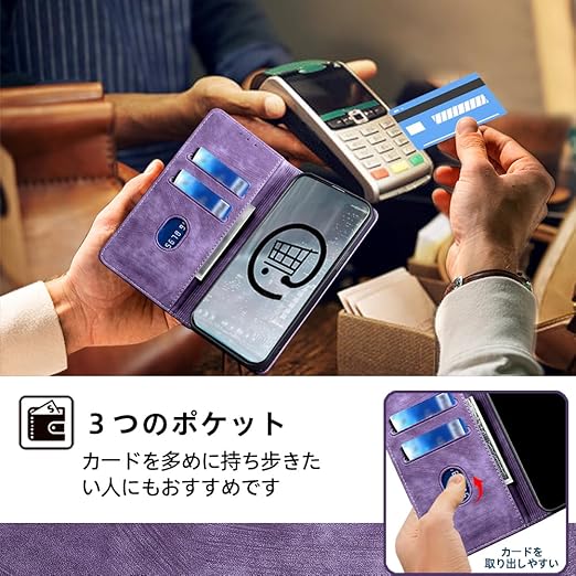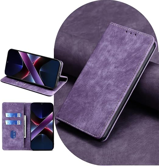AiMaoo Xiaomi POCO X7 Pro/Redmi Turbo 4 5G 対応 ケース 防塵 耐衝撃 傷つけ防止 軽量 手作り PUレザー カード収納 RFID磁気防止 マグネット スタンド機能 ケース 手帳型 Xiaomi POCO X7 Pro/Redmi Turbo 4 5G 用 (パープル) a