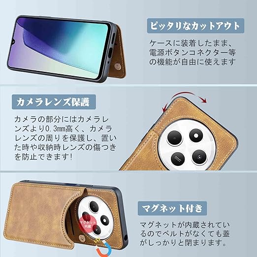 【Aqier】For XIAOMI Redmi 14C 用 ケース 背面手帳型 軽い薄い 純色 レザーケース(レトロブラウン)シャオミ レッドミー14c ケースカード入れ 片手操作 バック?カバー シャオミredmi14c 薄い茶 a