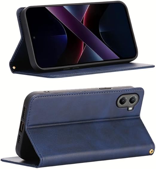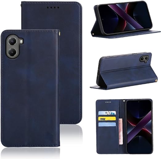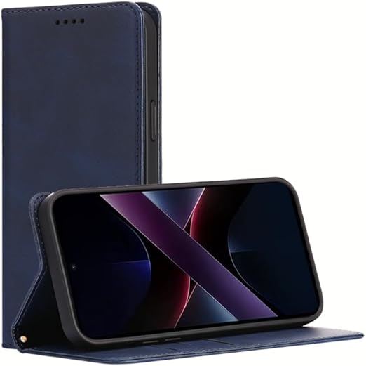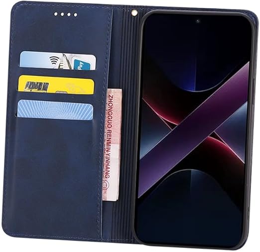に適用するXiaomi POCO X7 Pro ケース 手帳型 ノートブック型携帯電話保護カバー多機能携帯電話ホルスター財布携帯電話ホルダーバンプパターンテクスチャ耐久性摩擦耐性携帯電話ケース男性と女性に適した多色オプション (ダークブルー) a
