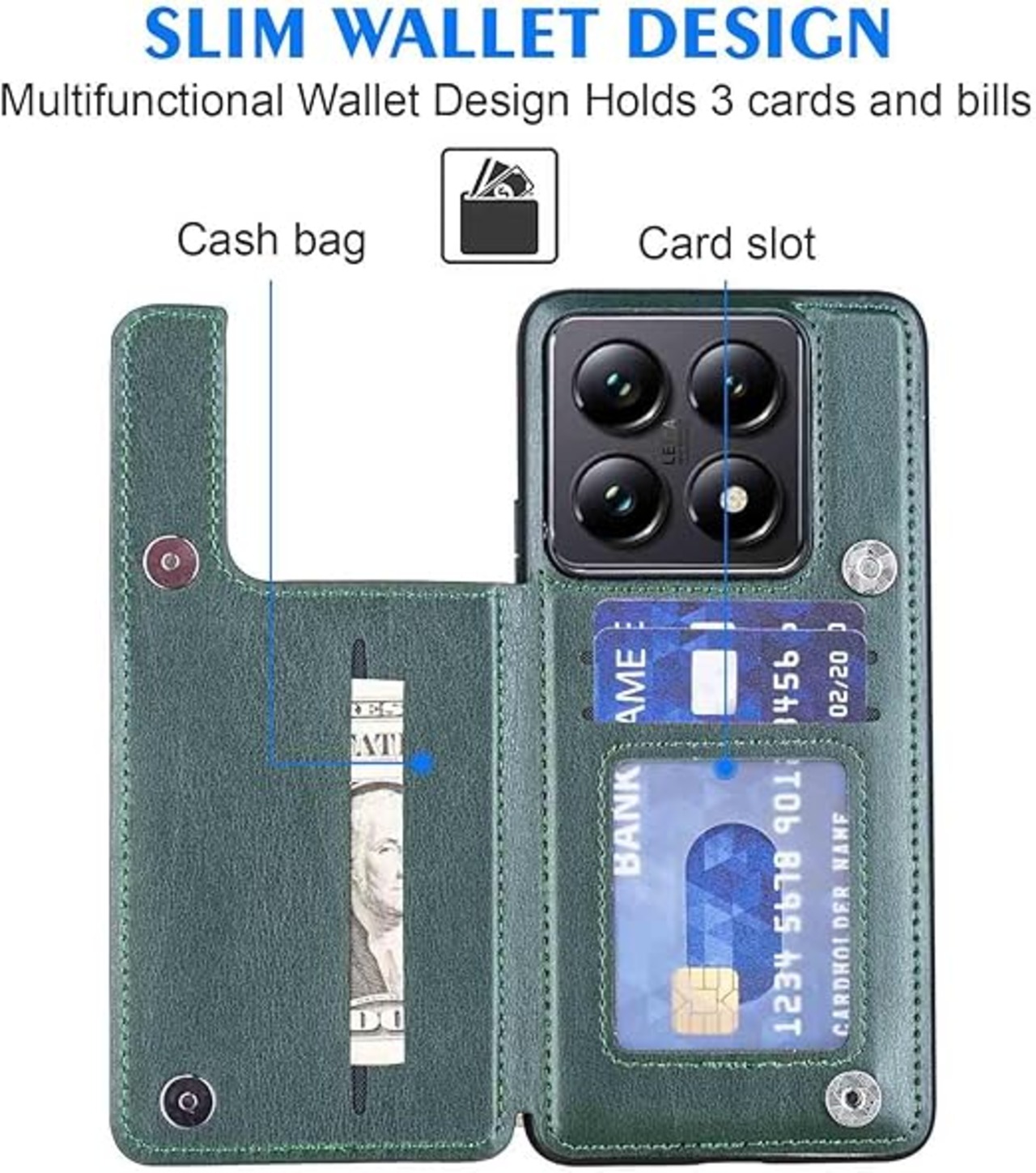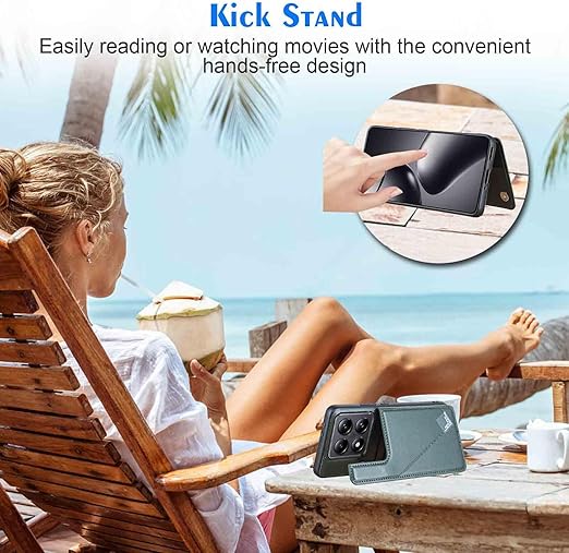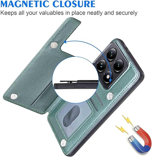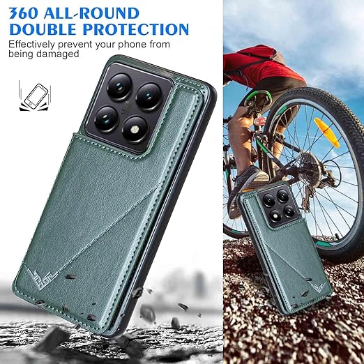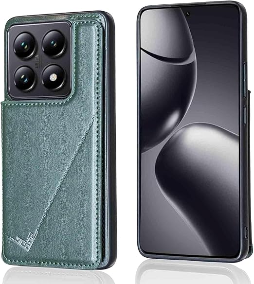 【Geshh】 Xiaomi 14T Pro レザーケース(ダルグリーン)耐衝撃耐衝撃 財布型カバー カード収納 横置きスタンド機能 開閉式 ストラップ付き 薄型レザーケース 対応 シャオミ mi14tpro GREEN a