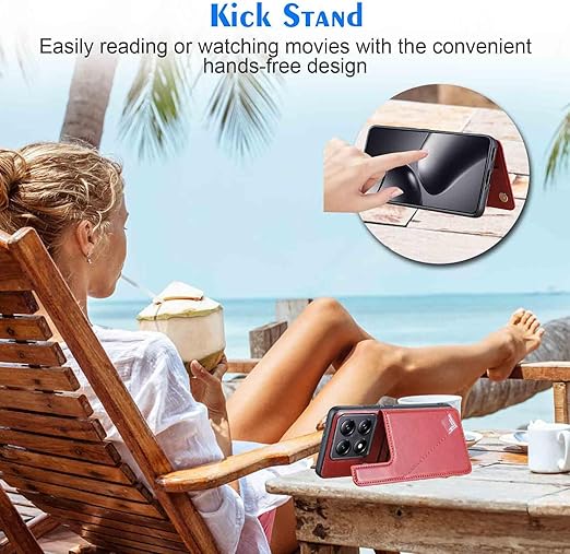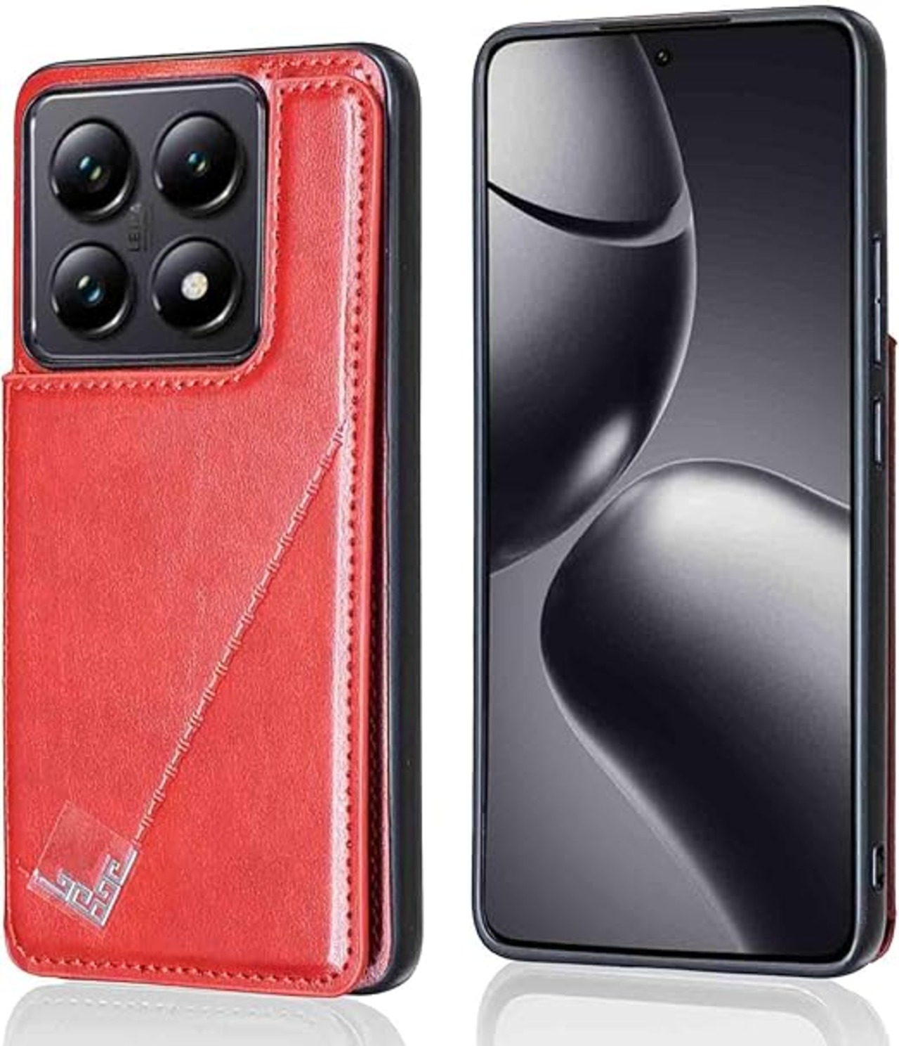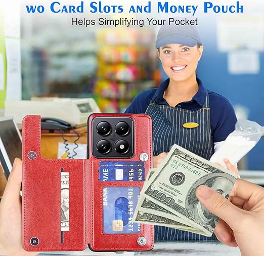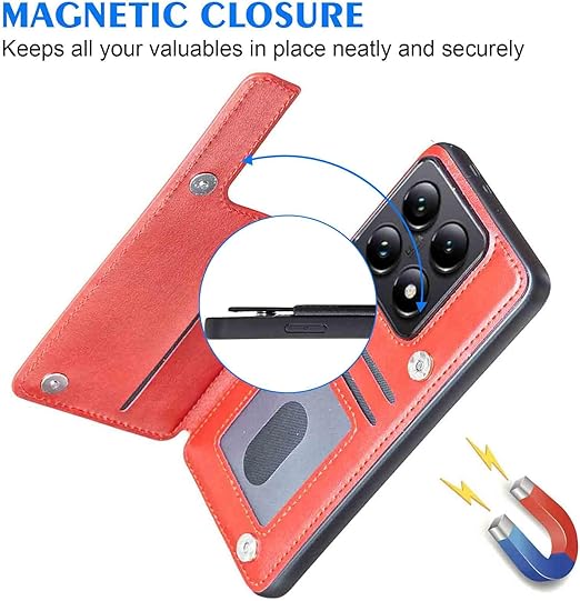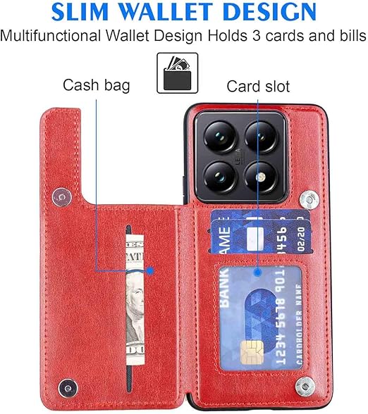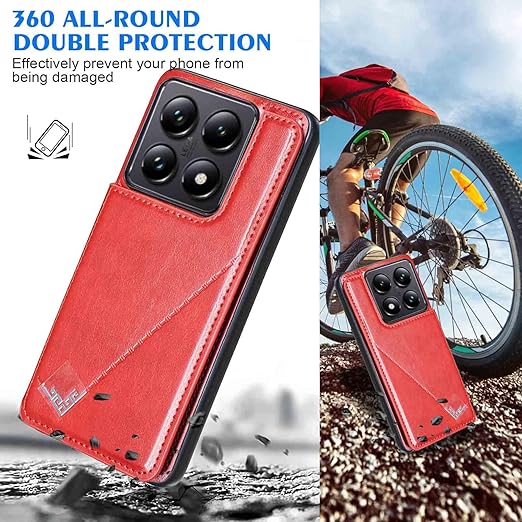 【Geshh】 Xiaomi 14T Pro レザーケース(レッド)耐衝撃耐衝撃 財布型カバー カード収納 横置きスタンド機能 開閉式 ストラップ付き 薄型レザーケース 対応 シャオミ mi14tpro RED a
