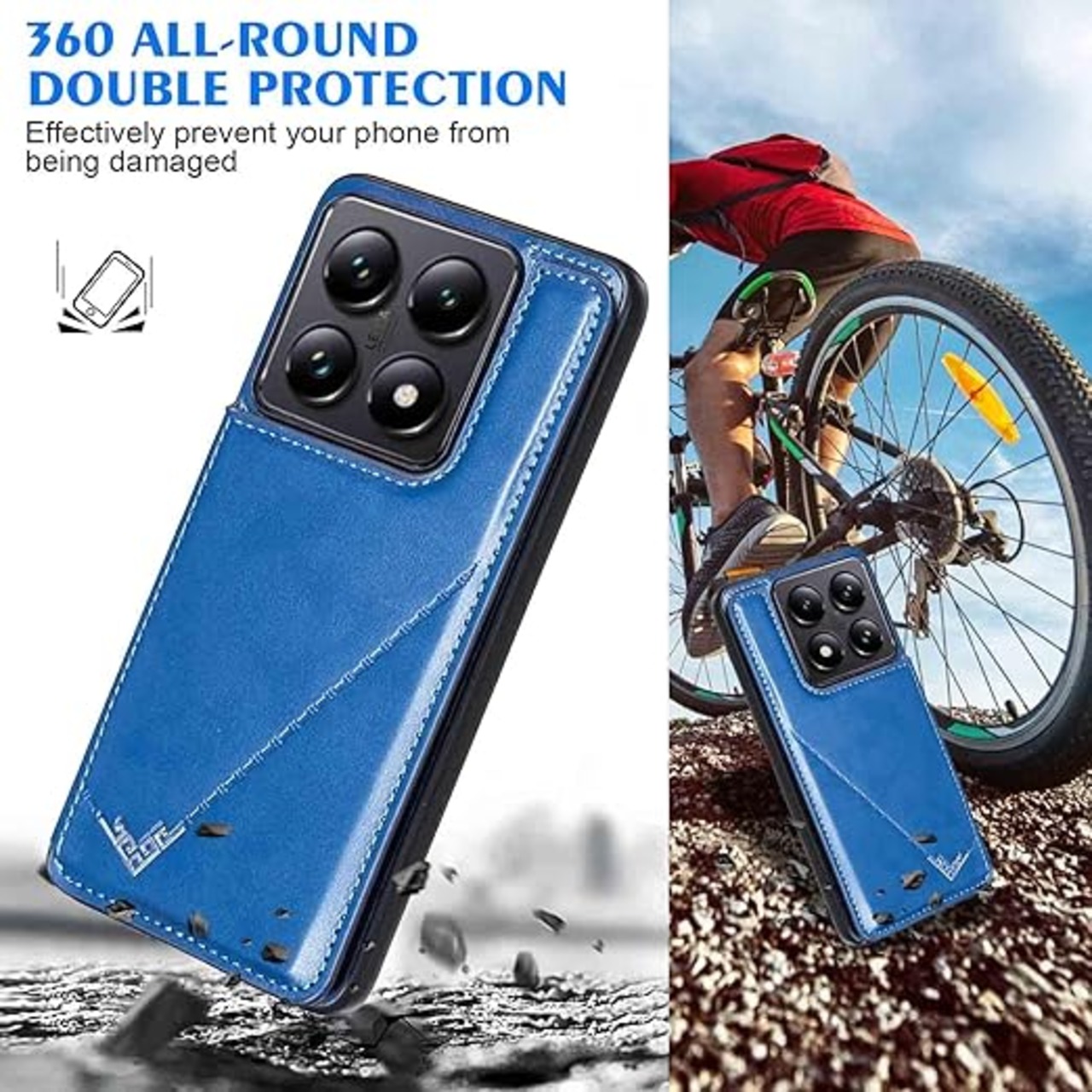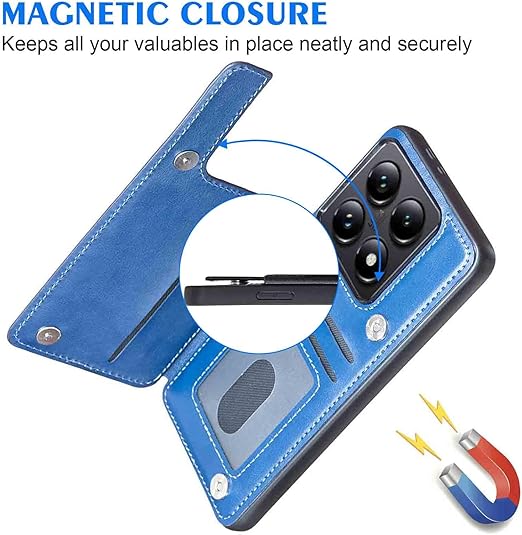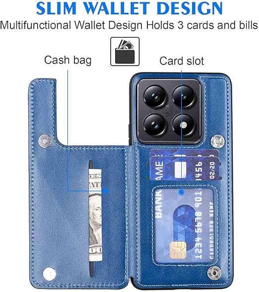 【Geshh】 Xiaomi 14T Pro レザーケース(ネイビーブルー)耐衝撃耐衝撃 財布型カバー カード収納 横置きスタンド機能 開閉式 ストラップ付き 薄型レザーケース 対応 シャオミ mi14tpro BLUE a