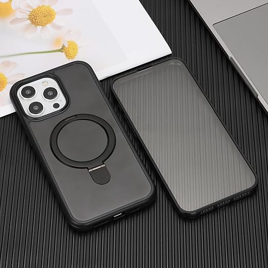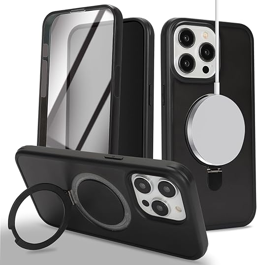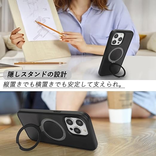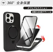 DEYHU 対応 iPhone15Pro ケース MagSafe 対応 360°全身バンパー保護 スマホケース iPhone 15 Pro カバー 液晶保護フィルム内蔵 隠し収納式スタンド ワイヤレス充電対応 ブラック a