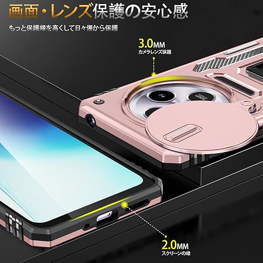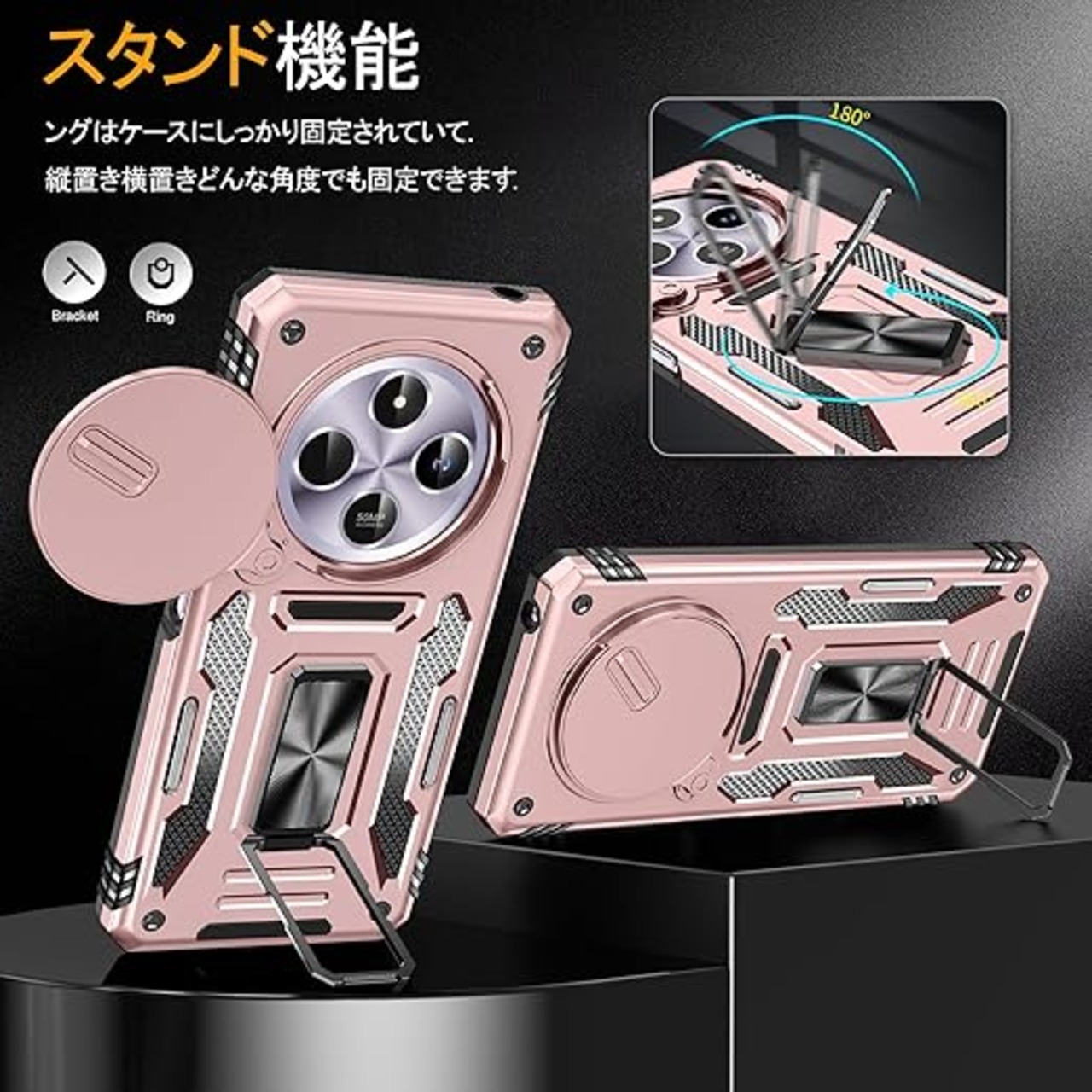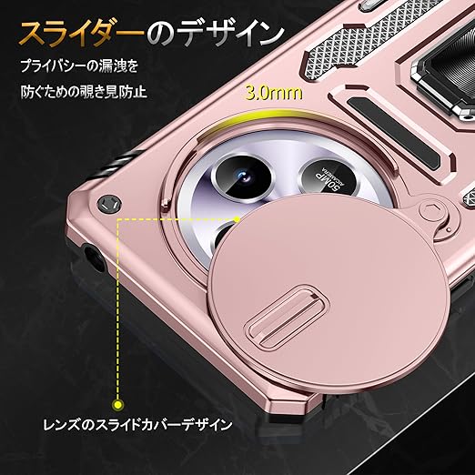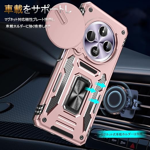 Redmi 14C 用ケース リング付き スライド式カメラカバー 耐衝撃 スタンド機能 車載ホルダー レンズ保護 シャオミ レドミ 14C 用スマホケース PC TPUバンパー 防塵 人気 落下防止 滑り止め 指紋防止 携帯カバー ピンク K279 a