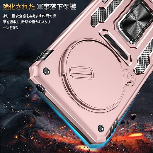二重構造:PC(ポリカーボネート)バック+TPU(シリコン)バンパー+金属ホールリング、内側TPU素材とハードPCフレームで制作するため、耐久性に優れた、外 部からの衝撃を内部に吸収されて、側に滑り止めの設計で、落下を防止にできます。全カバー式の音量ボタン&スイッチボタンの設計は、ぴったり合うだけではなく、操作しやすいよう最も適したサイズに作られています。