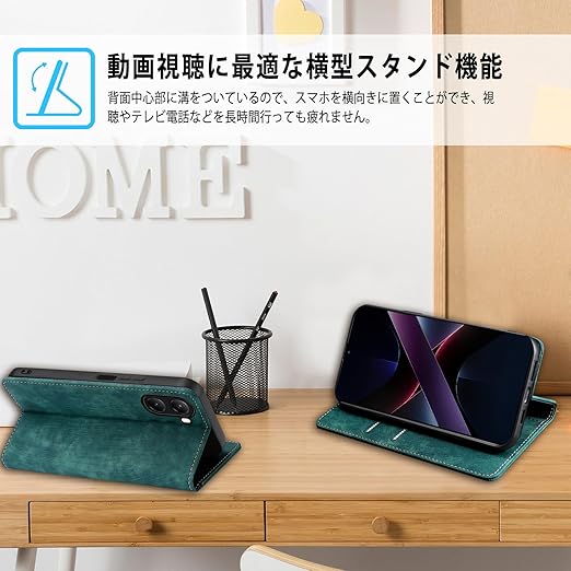 【素材】:NicMoolスマホケース手帳型外部は上質な合皮レザー素材を採用しており、傷や埃を防ぐことができます、滑りにくく、指紋、油分などもつきにくく。外部のPUレザー+内部の黒TPUという二重保護で、衝撃減少の機能性が抜群、スマホをし