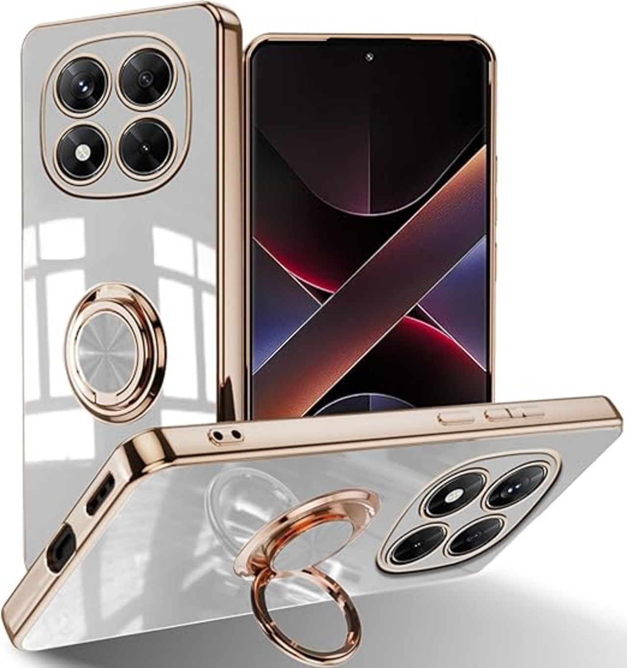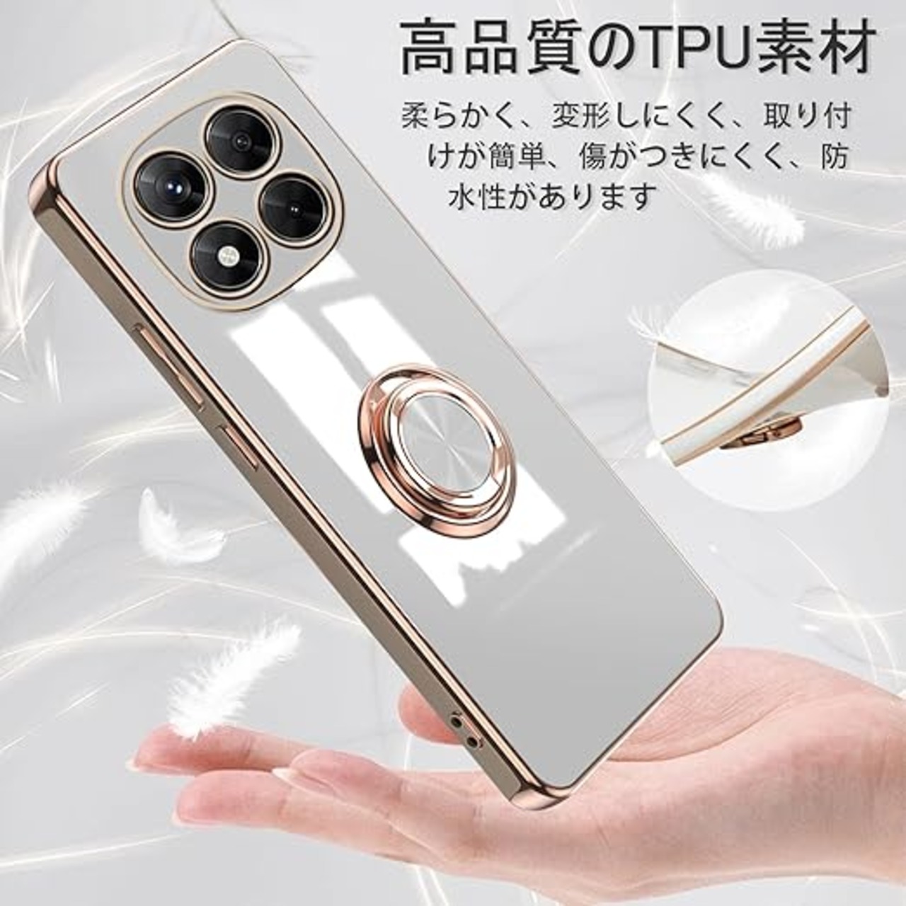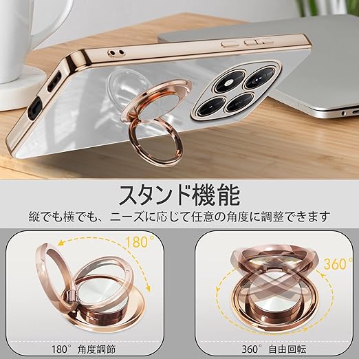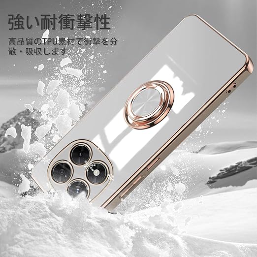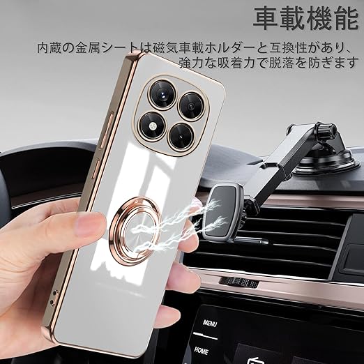 [ZoRoll] Xiaomi POCO X7 5G / Redmi Note 14 Pro 5G対応 ケース リング付き、 POCO X7 / Note 14 Pro TPU シリコン メッキ加工カバー 磁気吸着 軽量 薄型 人気 耐衝撃 タンド機能付き 360回転 車載ホルダー対応 シャオミ POCO X7 / ミレドミNote 14 Pro 用 カバー (ホワイト) a