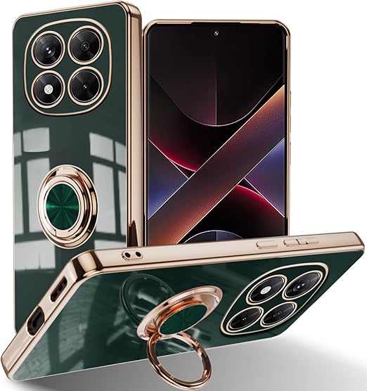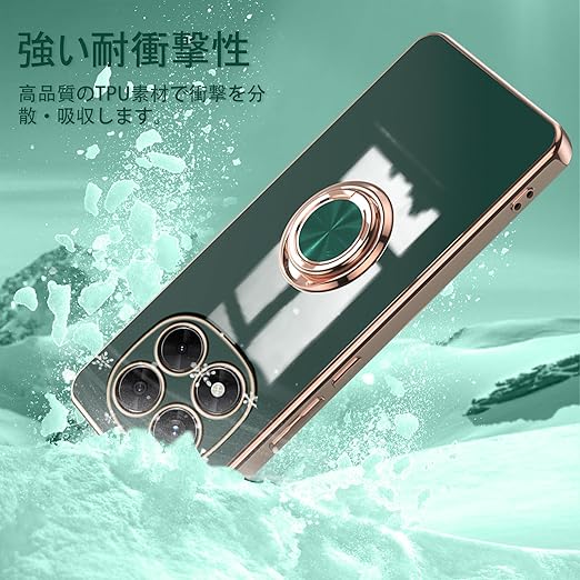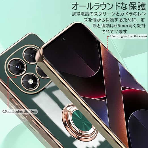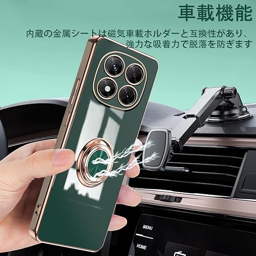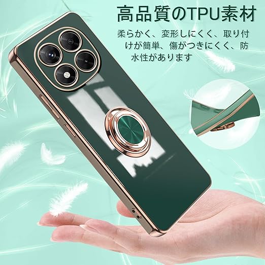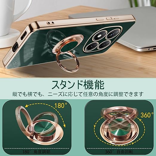 [ZoRoll] Xiaomi POCO X7 5G / Redmi Note 14 Pro 5G対応 ケース リング付き、 POCO X7 / Note 14 Pro TPU シリコン メッキ加工カバー 磁気吸着 軽量 薄型 人気 耐衝撃 タンド機能付き 360回転 車載ホルダー対応 シャオミ POCO X7 / ミレドミNote 14 Pro 用 カバー (ダークグリーン) a