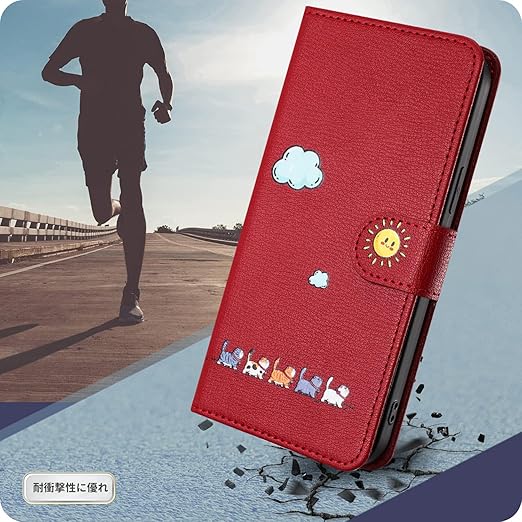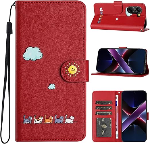 CASAFUNY ケース 手帳型 保護ケース シャオミ POCO X7プロ ケース 6.67インチ レッド カートゥーン 子猫 柔らかい 耐衝撃 スタンド機能 マグネット式 カード収納 a