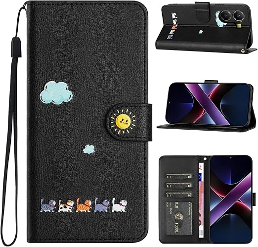 CASAFUNY Xiaomi POCO X7 Pro ケース 手帳型 人気 保護ケース シャオミ POCO X7プロ ケース 手帳型 PUレザー カバー ポコ X7 Pro ケース手帳型 お洒落 Xiaomi POCO X7 Pro 5G 携帯カバー 可愛い猫柄 軽量 携帯ケース スマホケース 耐衝撃 スマホカバー マグネット式 カード収納 スタンド機能 (6.67インチ)ブラック a