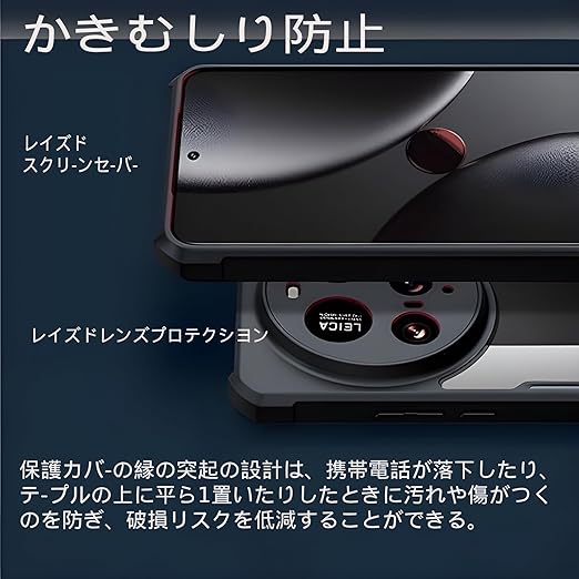 【液晶画面とカメラレンズを確かに保護】デバイスの薄さを維持しつつ、しっかり保護出来る高さで設計されています。カメラレンズより高く、液晶画面より高く設計して予期せぬキズから守ります。液晶画面ガラスフィルムを付着した場合にもフィルムをキズと衝撃から保護できます