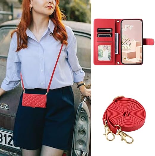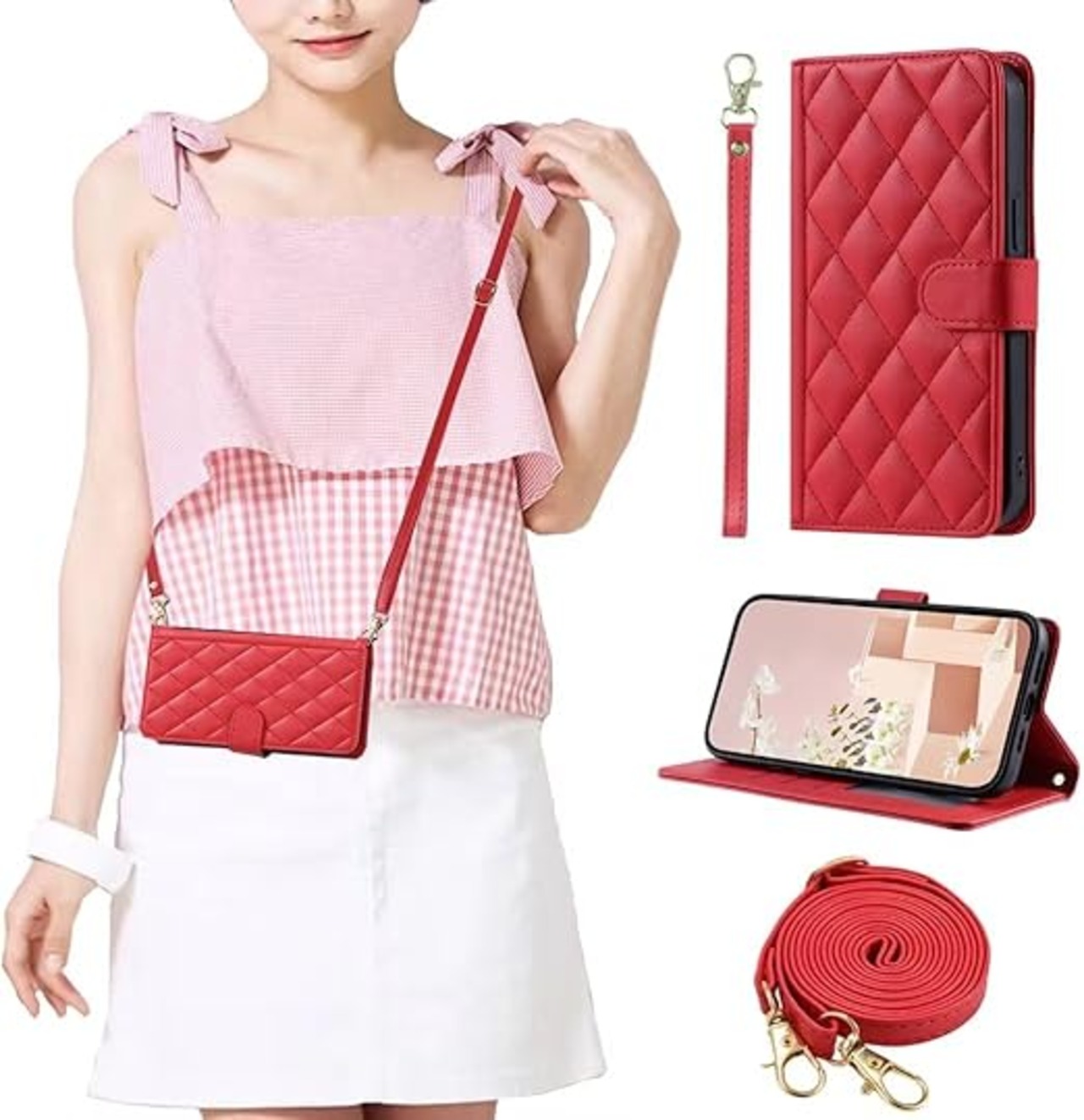 Xiaomi 15 Ultra ケース 手帳型 xiao mi 15 ultra カバー 手帳型 ストラップ付 エレガントで あるシャオミー15Ultra ケース 【Mldjomid】 シャオミ 15 ウルトラ カバー PUレザー スタンド機能 カード収納 ストラップ付き チェック柄 刺繍 Xiaomi 15 Ultra 5G ケース 財布型 (赤 a